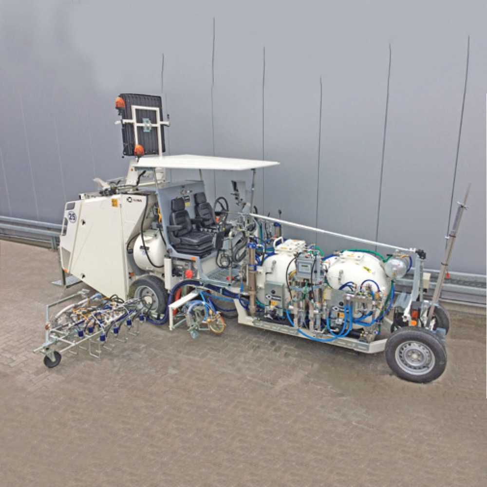 Hofmann H26 Airfield Marking Machine, Mid-Range Dual-Material Self-Propelled Airport Marking Machine — Multi-gun Airless cold paint and 2K spray cold plastic airfield marking machine for civil and military airport surfaces globally.