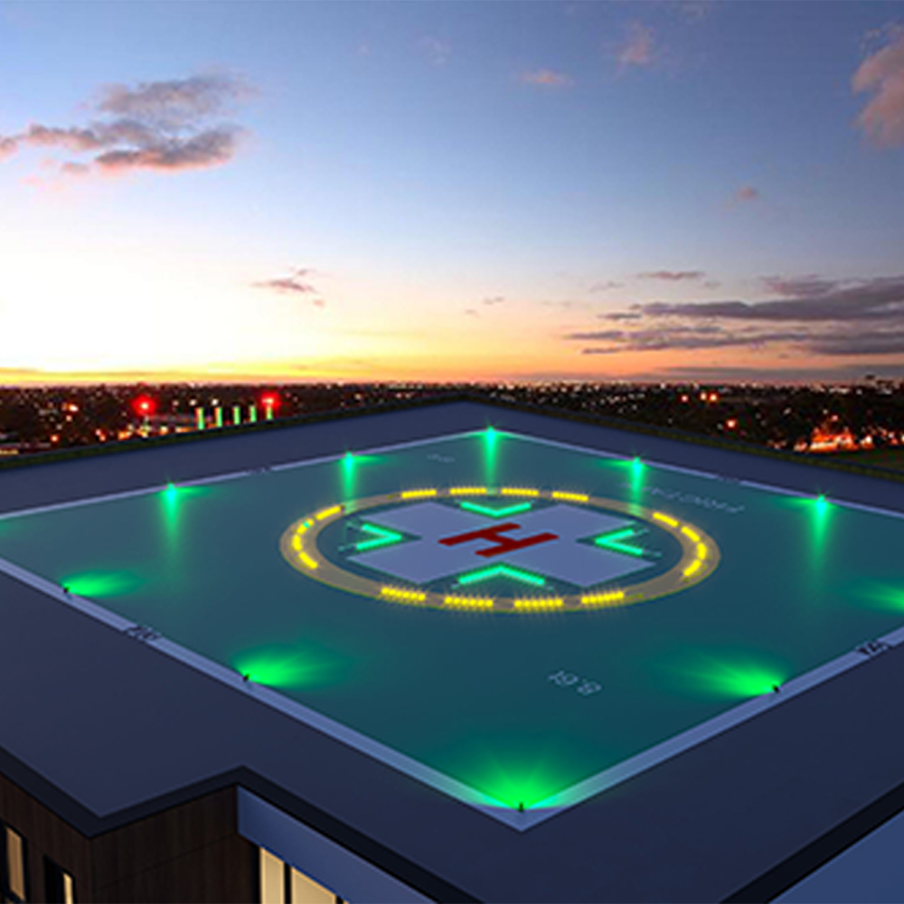Leader Infra supplies this CAP 1264 compliant hospital helipad lighting system for medical facility projects — bringing the same offshore-proven Netlight technology to onshore emergency helipad environments, with a no-drill installation option, long service life, and the lowest lifetime costs in the industry.
