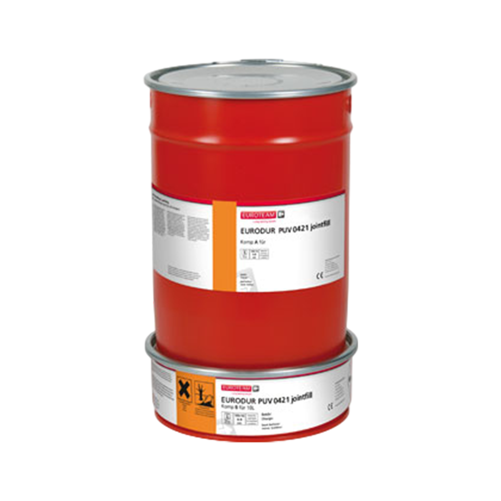 The EURODUR PUV 0421 JOINTFILL 0 is a two‑component polyurethane joint filler engineered for durable and flexible sealing of joints in industrial, commercial, and infrastructure flooring applications. It is designed to fill and seal movement joints, connection joints, and cracks in concrete and screed surfaces, providing a resilient barrier that accommodates structural movement while maintaining surface integrity. The product’s balanced elasticity and strength make it suitable for environments where dimensional changes and thermal expansion occur.