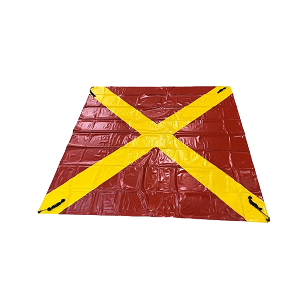 The reinforced vinyl construction resists offshore UV exposure, salt spray, and wind loading across the full 4 x 4 meter face without tearing or color fade. The welded hem and eyelet system holds the marker flat against the deck under operational wind conditions. If the marker sustains minor damage during use or storage, the material is repairable without requiring full replacement of the unit. The storage bag keeps the folded marker protected and immediately accessible to helideck personnel when a sudden closure event requires rapid deployment.